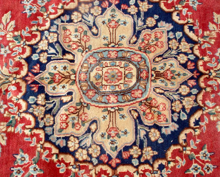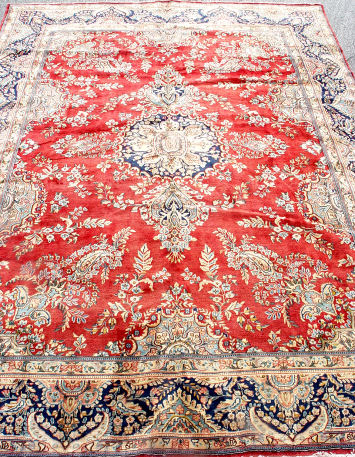 HAND TIED KIRMAN CARPET: Approx. 9'9'' x 13'10'', sticker verso Kerman, wool and cotton, Made in Iran.