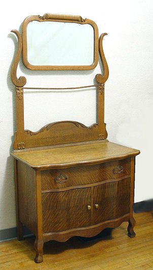 GOLDEN QUARTERSAWN TIGER OAK WASHSTAND W MIRROR & TOWELBAR: A match to lot 22. 70 1/2''h x 36''.