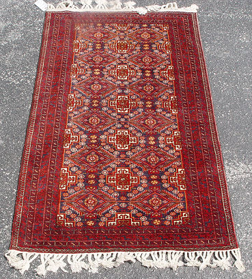 HAND TIED BOKARA PATTERN RUG: Approx. 5' x 2'11''