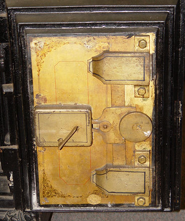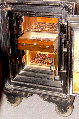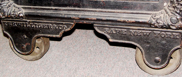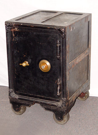 TERWILLIGER CO. IRON COMBINATION FLOOR SAFE: On heavy wheels. The combination is a Sargent & Greenleaf. Interior has a secondary locking compartment. 31''h. x 20'' x 22''.