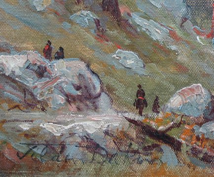 DAKEN, Samuel Tilden, (American, 1875-1935): ''North California Alps'' in winter, Indian and Cathedral Peaks, Fallen Leaf Lake from Angora Trail, O/C, 15'' x 20'', signed lower left, unframed.