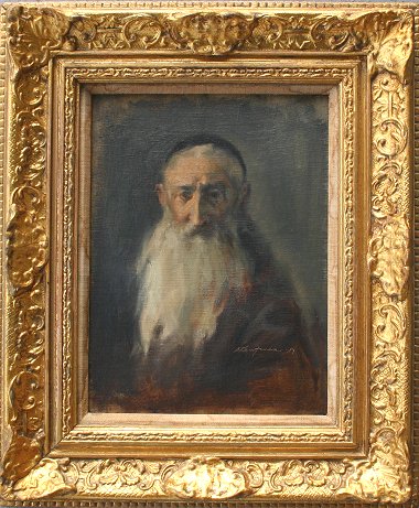 KAUFMAN, Stuart, (American, 1926-): Portrait of a Rabbi, O/CB, 12'' x 9'', signed lower right, dated 1957, also signed verso, encased in a embossed gilt carved frame, 18 1/4'' x 15 1/4''.