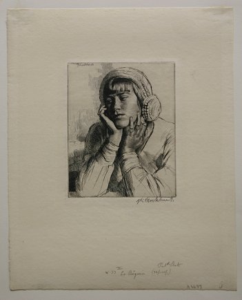 BROCKHURST, Gerald Leslie, (English, 1890-1978): ''Le Beguin'', Etching, 11 1/4'' x 9 1/4'', pencil signed lower right, illegible inscription lower margin indicating edition size, museum mounted, unframed, taped to original mat.