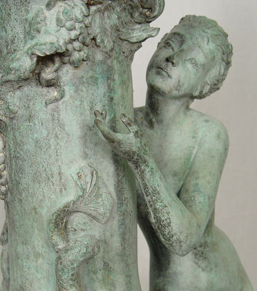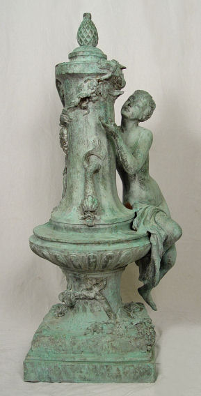 NUDE WOMAN AT THE FOUNTAIN - CONTEMPORARY BRONZE FOUNTAIN: Patinated bronze, 42''h, 14'' square base.