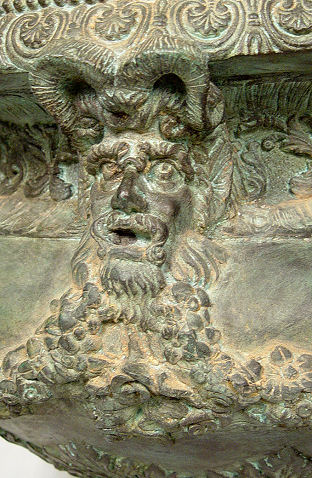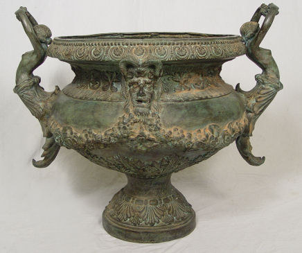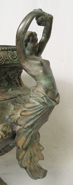 LARGE BRONZE JARDINIERE WITH SEMI NUDE FIGURAL HANDLES: 20'' dia, 26''h.