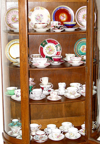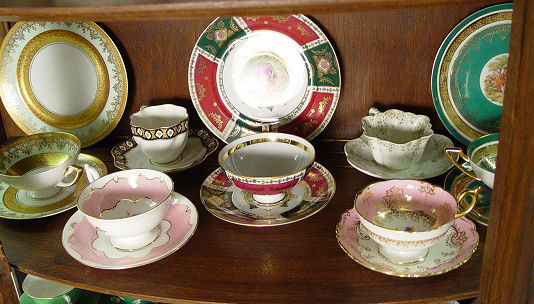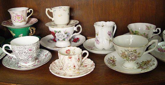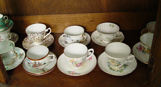 LARGE ESTATE COLLECTION OF FINE BONE CHINA CUPS AND SAUCERS AND TRIOS: 37 sets including demi-tasse. 7 of the cups and saucers have plates to match. By Paragon, England Fine Bone China, Coalport, Rosenthal, and more.