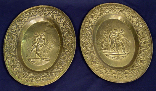 19TH C BRASS PLAQUES DEPICTING THE RAPE OF THE SABINE WOMEN: Large oval wall plaques in deep relief, 27'' x 20 1/2'' oval.