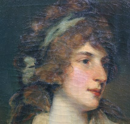 MUSEUM QUALITY REPRODUCTION 20TH CENTURY PORTRAIT OF A YOUNG MAIDEN, O/C: 24'' x 20'', no visible signature, stenciled COPY verso, encased in a later gold frame with fabric accent, 28'' x 24''.