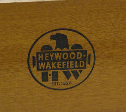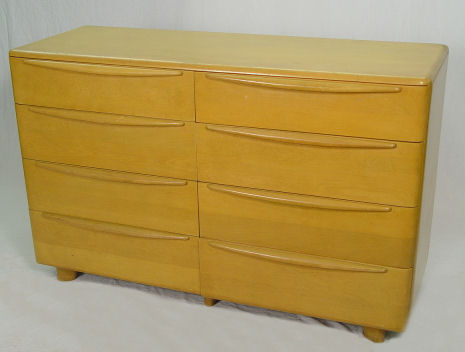 HEYWOOD WAKEFIELD ENCORE MR. & MRS. DRESSER AND UTILITY HEADBOARD: Both Champagne finish, Dresser M 524, 53'' x 20'' x 34'', marked inside top left drawer, circa 1948-1955 and Headboard M 790 55 1/2'' x 37''h., marked verso with number and color, circa 1953-1955.