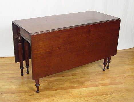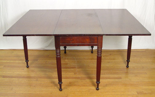 PERIOD SHERATON FINE MAHOGANY DROP LEAF TABLE: Swing gate legs, the table is 28 3/4''h., 62 1/2'' x 48 1/4'' with leaves extended.