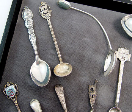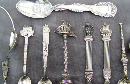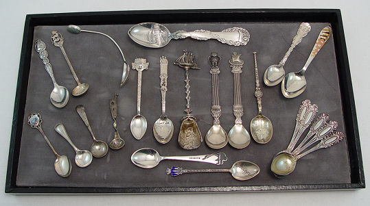 ESTATE LOT OF STERLING COLLECTOR SPOONS: Approx. 23 to include, Gorham Christmas spoon, Alaska Mount McKinley, Hakone, Peru, Denmark, Greece, Cozumel Mexico, Thailand, Washington DC teaspoon, salt spoons, demitasse spoons, etc. Sold as a lot.