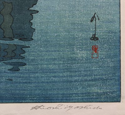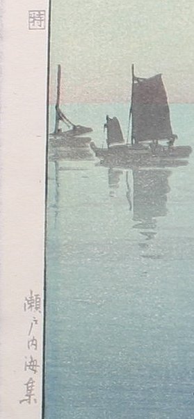 YOSHIDA, Hiroshi, (Japanese, 1876-1950): ''Sailing Boats - Forenoon'', Woodblock, image size 20'' x 14'', 21 1/2'' x 15 1/2'' with margins, stamped signature lower right and titled lower left, special edition seal in left margin, slight mat marks, tape residue upper margin, pin hole upper left corner.