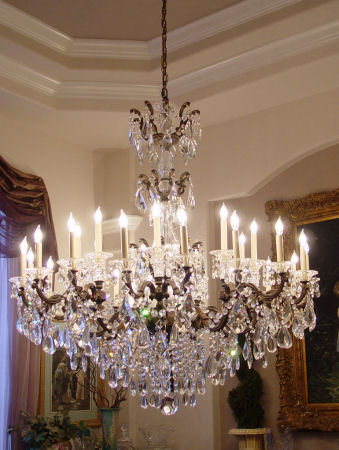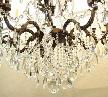 PALATIAL SCHONBEK CRYSTAL CHANDELIER: Most exquisite faceted and smooth crystals hang from the 27 light chandelier. Not for the timid. Approx. 48'' dia, hangs approx. 54''