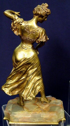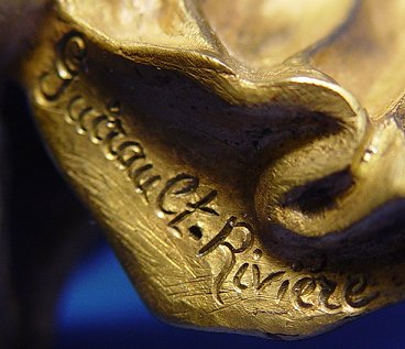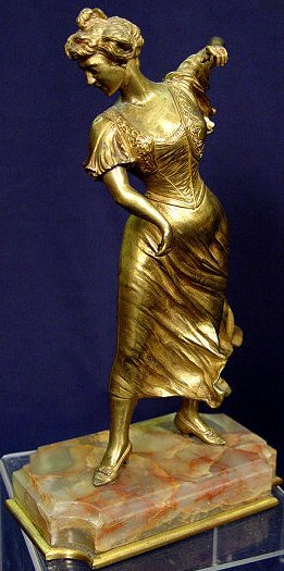 DORE BRONZE MAIDEN SIGNED GIRCAULT?-RIVIERE: Ca.1890, 9 1/4'' l., polished onyx and bronze base.