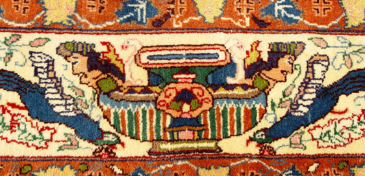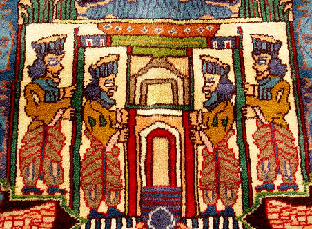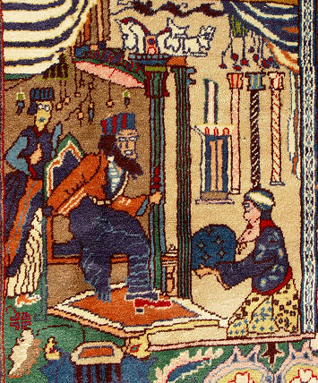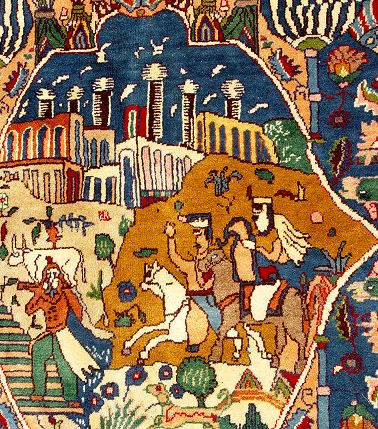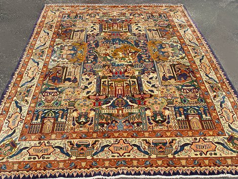 HAND MADE PERSIAN PICTORIAL KOSHMAR CARPET: Approx. 9'8'' x 13'2'', showing animals, people & buildings.