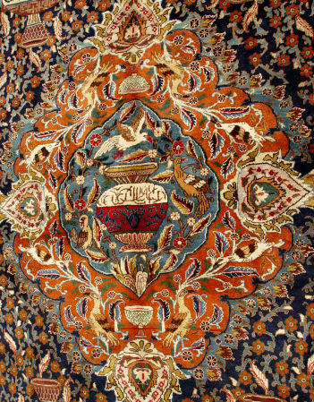 HAND MADE PERSIAN KOSHMAR CARPET: Approx. 10'3'' x 13'3'', Birds & Urns.