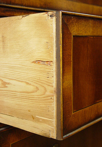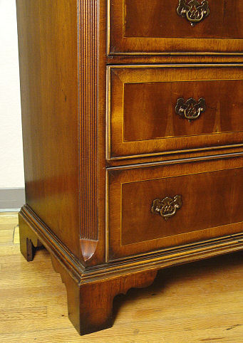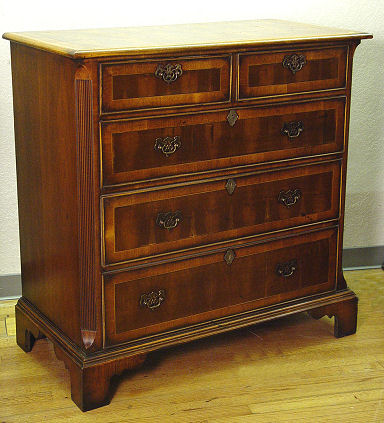 OYSTER VENEER WALNUT CHEST CA. 1840: 2 drawers over 3 full length drawers, bracket feet, canted and reeded stiles. 42 1/2''h. x 22'' x 42''w. Est. $1500/1800**