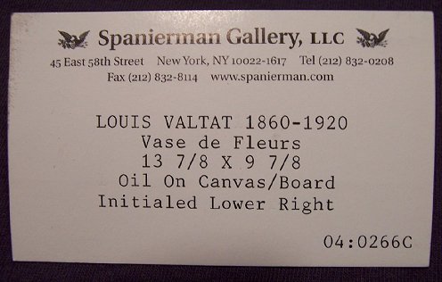 VALTAT, Louis, (French, 1860-1920): ''Vase De Fleurs'', O/CB, 13 7/8'' x 9 7/8'', encased in a worn and overpainted frame, 16 1/2'' x 12 1/2'', Spanierman Gallery label with inventory number affixed verso. Est. $8000/1200**