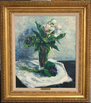 SEBIRE, Gaston, (French, 1920-): Floral still life, O/C, 22'' x 18 1/2'', signed lower left, encased in carved and gilded frame with minor wear, 30'' x 26'', Wally Findlay Galleries, N.Y. label affixed verso.