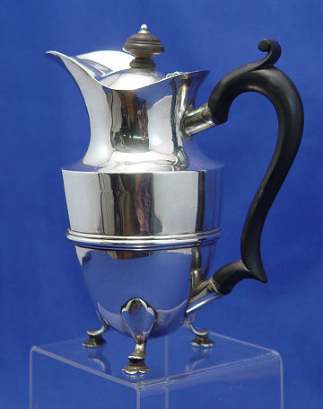ENGLISH STERLING COFFEE OR TEA POT: Hallmarks indicate London 1900, maker CB. 7 1/4''h. Ebony handle and finial. Approx. 13.95 oz.