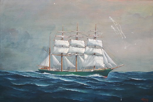 SELBY, Joe, (American, 1893-1960): ''Willy Rickmers'' clipper ship portrait, O/CB, 20'' x 30'', signed lower right and dated 1939, a Miami Moon Artshop stencil verso. Condition - Several abrasions scattered throughout with minor paint loss, needs cleaning.