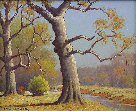 MOORE, Benson Bond, (American, 1882-1974): ''Beeches, Piney Branch, D.C.'', O/B, 6 1/4'' x 8'', signed lower left and titled verso, encased in contemporary frame, 7 3/4'' x 12''. Est. $800/1200**