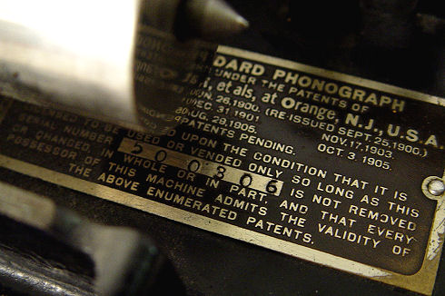 EDISON STANDARD WIND UP PHONOGRAPH WITH FLOWER HORN AND CYLINDERS: Tiger oak case with lid, serial number 50306, the cylinders do spin. The horn has original hand painted flower design. Sold with 8 cylinders in cases. Please call for more information.