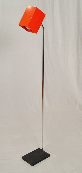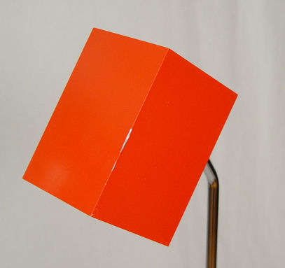 ITALIAN DESIGNER MODERN POLE LAMP: Weighted base, red metal shade, 28''h.