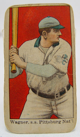 1908 E102 HONUS WAGNER BATTING CARD FOR PITTSBURG: Approximately 2 3/4'' x 1 1/2'', rounded corners small crease mid right margin, faint abrasions/impressions upper left corner.