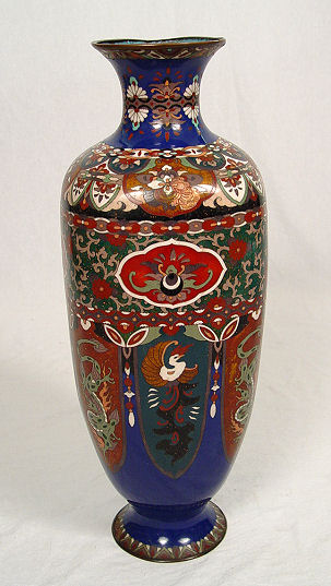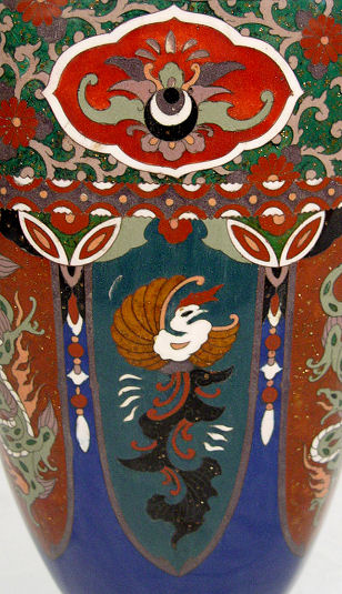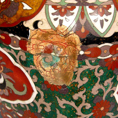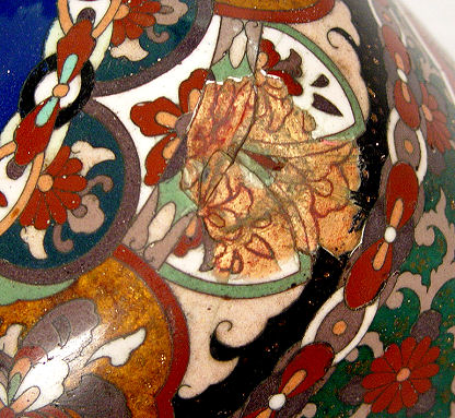 24'' TALL GOLD STONE JAPANESE CLOISONNE VASE: Early vase in jewel tone cloisonne. Please note condition.