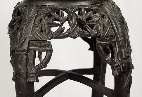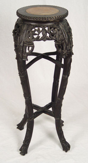 CHINESE CARVED BAMBOO MOTIF STAND: Marble insert, 33''h. 10 1/2'' dia.