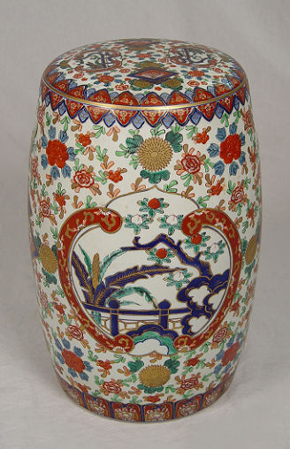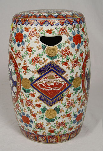 CHINESE IRONSTONE GARDEN SEAT IN THE IMARI COLORS: 17 1/2''h. No identifying makers marks.