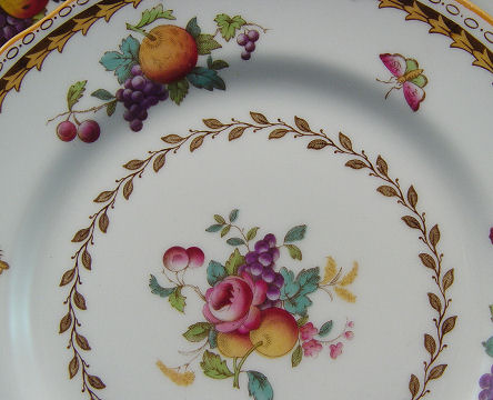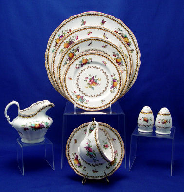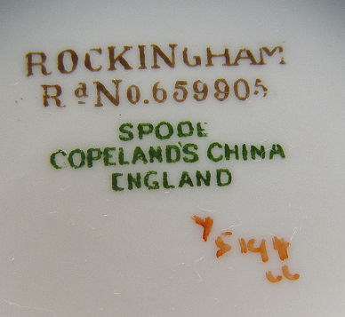 SPODE ROCKINGHAM CHINA SERVICE: 38 pieces to include 11 dinner plates, 10 1/2'' dia., 8 salad plates, 8 bread plates, 9 cups and saucers, a soup plate, gravy boat, and salt and pepper. The set has the early 1917 registration marks, the salad plates have a later mark.