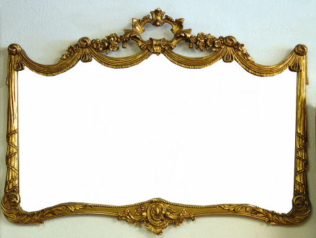 ORNATE DECORATIVE RIBBON AND FLORAL SWAG FRAMED PARLOR MIRROR: 20th C composition ornate frame. 32''h. x 55''w. Est. $300/400**