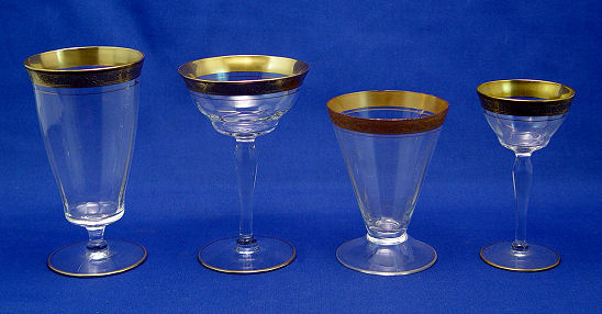 FOSTORIA WIDE GOLD RIM STEMWARE INCLUDES 43 PIECES: Set includes 12 cordials (5 1/8''), 20 champagne/sherbet (5 3/4), 11 water goblets (6 1/4'').