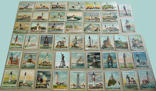 HASSAN LIGHTHOUSE SERIES TOBACCO CARDS: 47 Cards, sold as a lot.