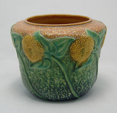 ROSEVILLE ''SUNFLOWER'' ART POTTERY JARDINIERE VASE: 5''h. Free of chips, cracks, or repairs. Est. $550/650**