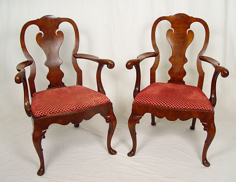 PAIR OF SCHMIEG & KOTZIAN MAHOGANY QUEEN ANN CHAIRS: Brass label ''Schmieg & Kotzian Designers and Cabinet Makers'' New York. Finest detail as expected by this firm whose furniture sits in the White House and Waldorf Astoria. 40''h. the seat is 18 1/2''h. 22''w.