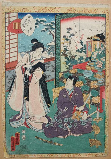 TWO KUNISADA II JAPANESE WOODBLOCK PRINTS: Approximate sizes with margins 14 1/4'' x 9 3/4'', tipped to backing.