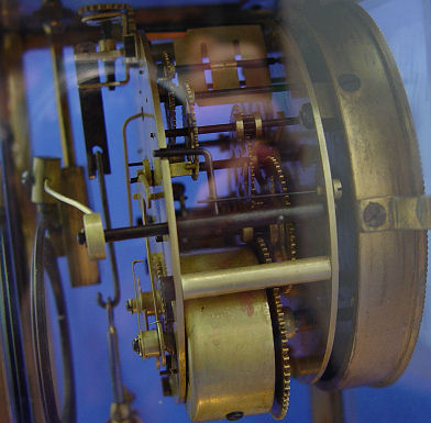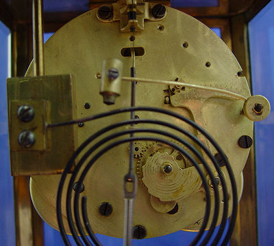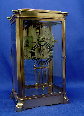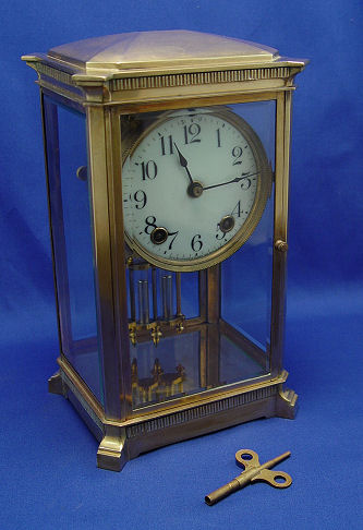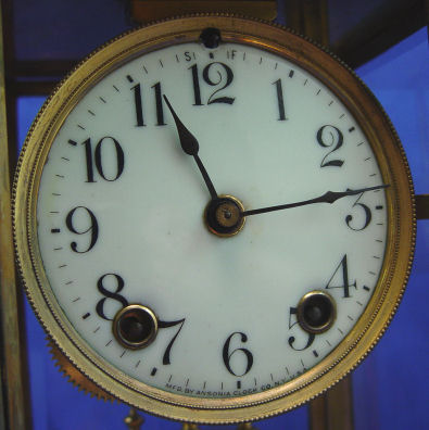 ANSONIA CRYSTAL REGULATOR CLOCK ''THE PROVENCE'': Ca. 1920. Brass case with beveled glass, 4'' porcelain dial, 8 day time and strike on coil gong, simulated mercury pendulum. 11''h. x 6 1/2'' x 5 1/2''. Est. $500/600**