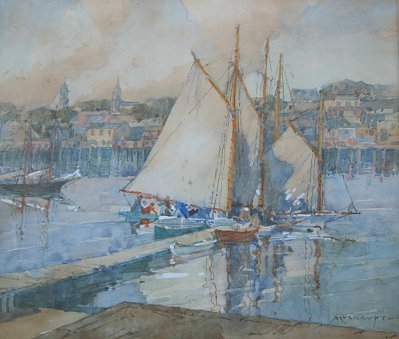 MULHAUPT, Frederick, (American, 1871-1938): ''Float at Rocky Neck, East Gloucester'', Gouache, 8 3/4'' x 10'' sight size, SLR, titled verso, some browning to paper. Est. $800/1200**