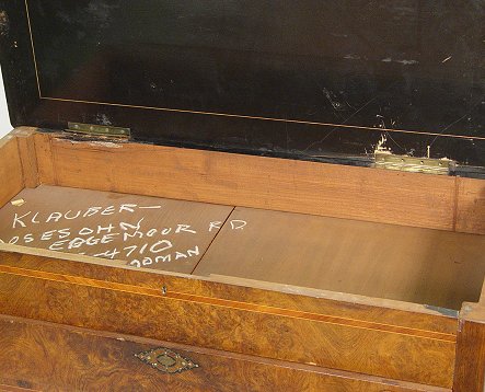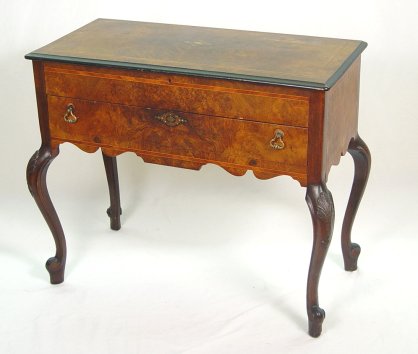 ITALIAN LIFT TOP DRESSING TABLE: Single drawer with mother of pearl and parquetry inlay, shaped skirt, carved cabriole legs. 29 3/4'' X 33''X 20''. Please call for condition.