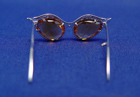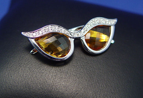 ADORABLE DESIGNER CITRINE & DIAMOND SUNGLASSES PENDANT: Two briolette cut citrines set in cat-eye shaped frames topped with small diamonds, 14k white gold, approx. 3ctw of citrine and 1/4ctw of diamonds, marked 14k 585 FP, 1 1/4''l. Est. $250/300**