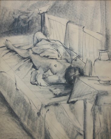 BRACKMAN, Robert, (American, 1898-1980): Reclining nude sketch, Charcoal, sight size 19 1/4'' x 15 3/8'', signed lower right, encased in later antiqued wood frame, 25 1/4'' x 21 1/4''.