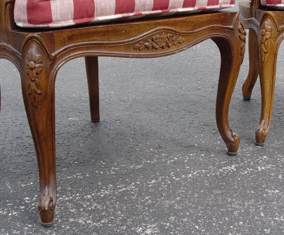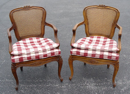PAIR OF COUNTRY FRENCH OPEN ARM CHAIRS: Later 20th C.
