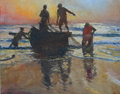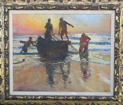 FRIED, Pal, (Hung/Amer, 1893-1976): Shoreline scene with workers, O/C, 24'' X 30'', signed lower left. Est. $2000/4000**