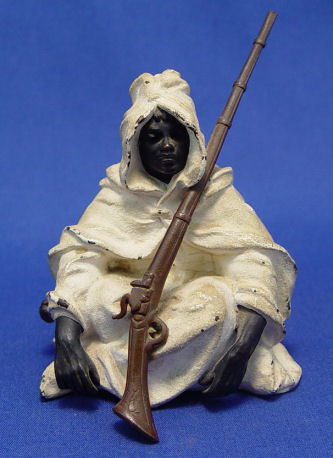 AUSTRIAN ORIENTALIST BRONZE ARAB FIGURE WITH RIFLE: Cold painted bronze. Attributed to Bergman. 3 7/8''h. overall, minor paint loss. Marked #1000, Geschutz and Depose