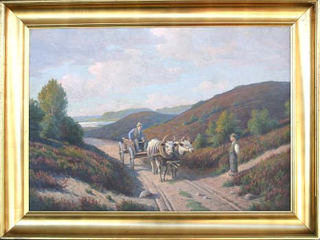 LARSEN, Alfred, (Danish, 1860-1946): ''Country Meeting'', O/C, 26'' x 37 1/4'', signed lower right, encased in a worn gilded frame of the period, 33'' x 43 3/4''.