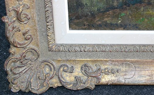 VERY GOOD EUROPEAN VILLAGE SCENE PROBABLY BRITTANY: O/C, 19 3/4'' x 23 3/4'', illegibly signed lower left **Schmeyer?, encased in elegant carved and gilded frame, 28'' x 32''.