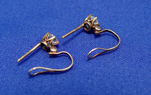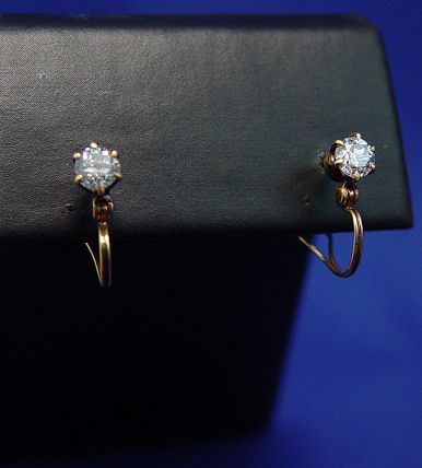 PAIR OF DIAMOND EARRINGS: Single round brilliant cut diamonds to each, approx. 30-40pts each, set in 14k (assayed) rose gold screw post with flip latch mounts.